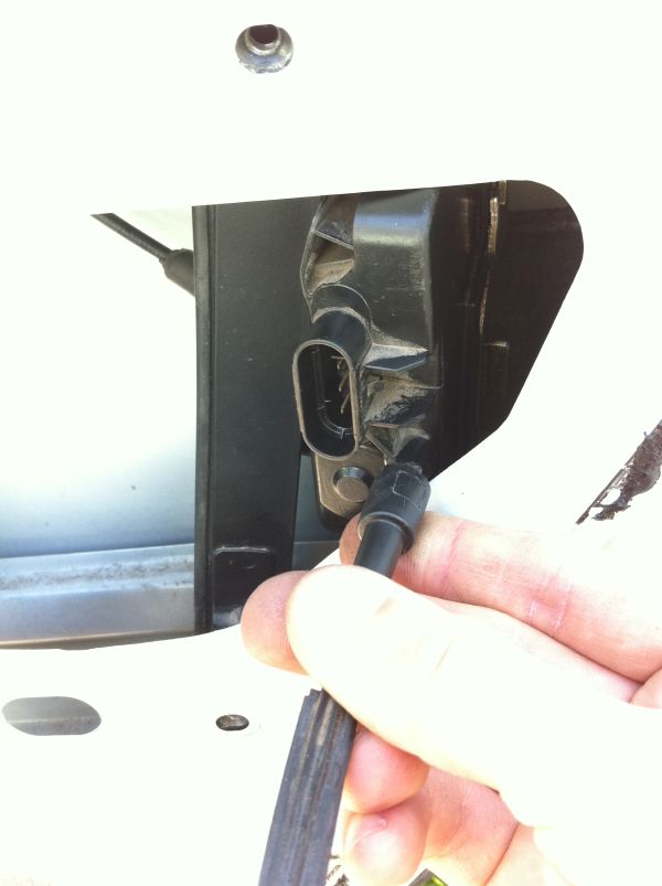 On repère le microcontact à l'ohmmètre sur a fiche 4 contacts du dessus. (loquet fermé, non passant. Loquet ouvert, passant).